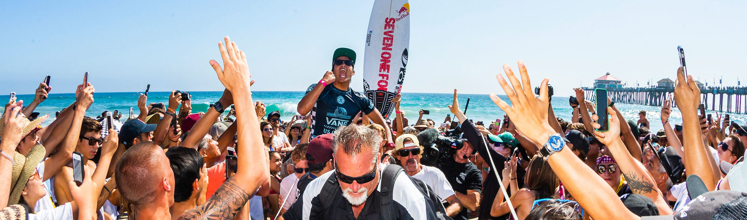 Some headlines write themselves. Like, for example, yesterday’s headline probably would’ve been “Hawaiians Sweep Vans US Open,” — which they did in Men’s and Women’s Junior’s and the Duct Tape. But, as we know, Seth Moniz went crazytown, which was a bit more compelling, so we went with that one.